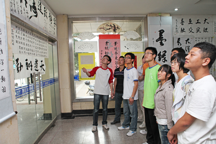 5月9日书画展开展当天,学院党委书记王晖、院长王长友、副院长王闯还亲临现场观摩,对本次活动给予高度赞扬,勉励同学们发挥自身特长,活跃校园文化氛围,为学院校园文化建设贡献力量,以优异成绩向建党90周年献礼!(供稿:张玉鹏 编辑:余飞)
