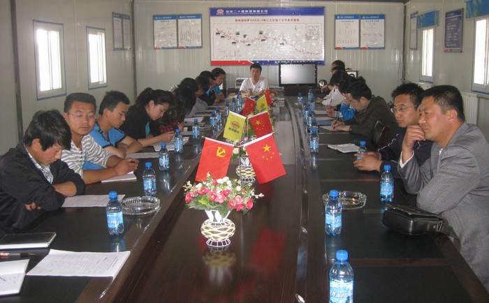 铁工系教师在项目部调与顶岗实习学生(左排)进行座谈
