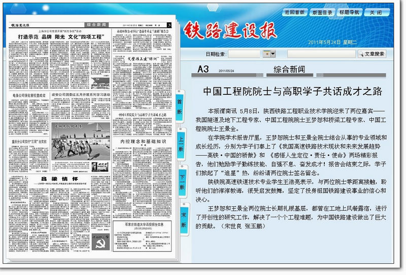 《铁路建设报》5月24日第3版以“中国工程院院士与高职学子共话成才之路”为题报道学院