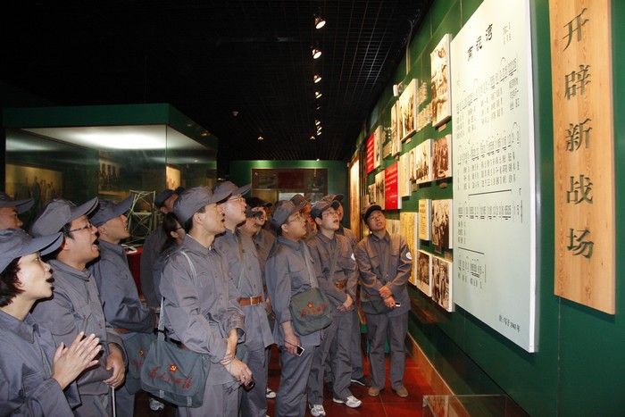 30日上午,经过一夜休整,43名学员来到南泥湾,参观了南泥湾大生产展览馆,学习南泥湾精神。看到一张张老照片生动的记录着那个年代热火朝天的革命热情,学员们情不自禁的唱起歌颂三九五旅艰苦奋斗精神的革命歌曲——《南泥湾》。