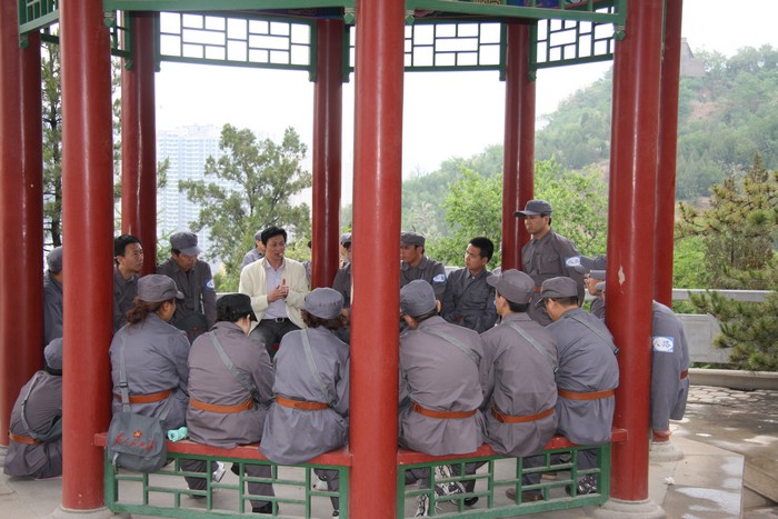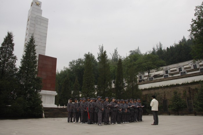 在张思德广场上,全体学员接受群众路线与宗旨教育,牢固树立“为人民服务”的思想