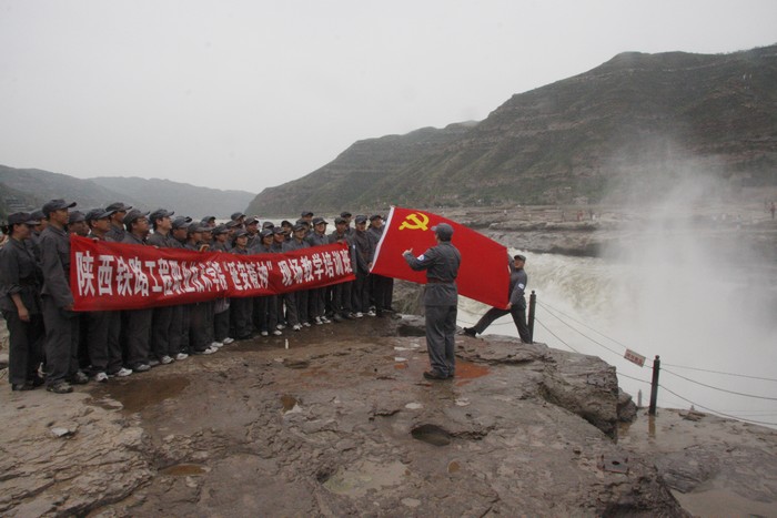 离开南泥湾,学员们来到了壶口。在声如雷鸣,气势壮观的壶口瀑布前,学员们迎着风,迎着喷溅而来的黄河之水,高唱《黄河大合唱》,将几天里延安之行的所见所感,纵情挥发,歌唱伟大的祖国,歌唱伟大的中国共产党!学员们的豪迈精神感染了周围的游客,不少群众走来和合唱队伍拍照留念。