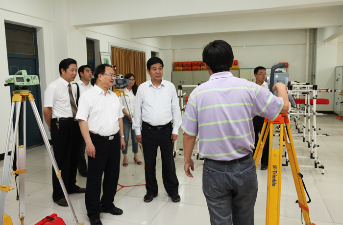 马树超研究员在学院院长王长友、副院长焦胜军的陪同下参观校园,图为马树超研究员参观学院实验实训中心场景