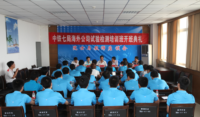 8月15日上午,中铁七局海外公司试验检测培训班开班典礼在陕西铁路工程职业技术学院12楼会议室举行。学院院长王长友,中铁七局海外公司副总经理李淮峰,人力资源副部长柏瑞,预算合同部副部长贾青松,道桥工程系、继续教育部负责人以及参加培训的30名学员共同参加了开班典礼。