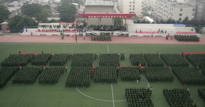 9月16日上午,学院在运动场举行2011级新生军训汇报大会,3500名新生接受学院领导检阅。学院领导王晖,王长友,车绪武,杨云峰,王闯、李林军,中国人民解放军63785部队团长张德胜、技工训练队队长晋军鸿出席大会。军训团全体教官学员和相关部门负责人参加了大会。大会由党委副书记车绪武主持。