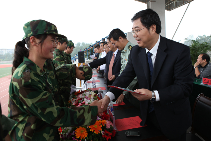会上,三十支军训连队依次走过主席台,接受各位领导和首长的检阅。军训学员们矫健的身姿、整齐的步伐、嘹亮的口号,昂扬的士气赢得在场师生的热烈掌声。12支军训先进连队和356名先进个人受到了表彰,并颁发了奖状和证书。
