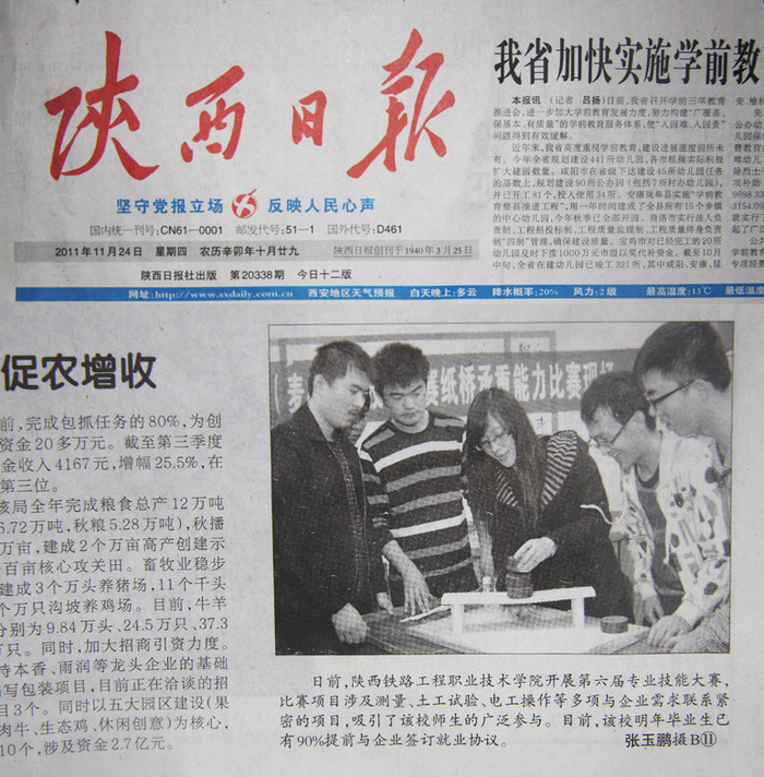 11月24日,《陕西日报》第7版对学院开展第六届技能大赛的消息进行了报道。