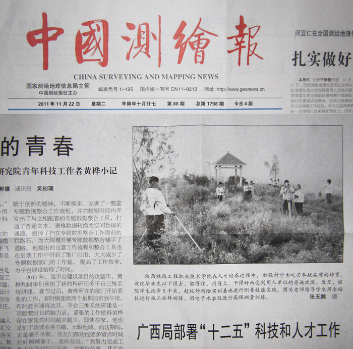 近日,《中国测绘报》、《陕西日报》等媒体分别对学院开展技能大赛活动加强学生技能训练,90%的2012届毕业生提前一年被企业预订等消息进行了报道。以下为报纸截图:
