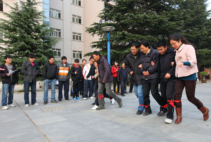 12月1日下午,陕西铁路工程职业技术学院A楼前广场上,院党委书记王晖正兴趣盎然的和机关一支会的教职员工们一起参加“齐心协力向前跑”趣味体育比赛活动