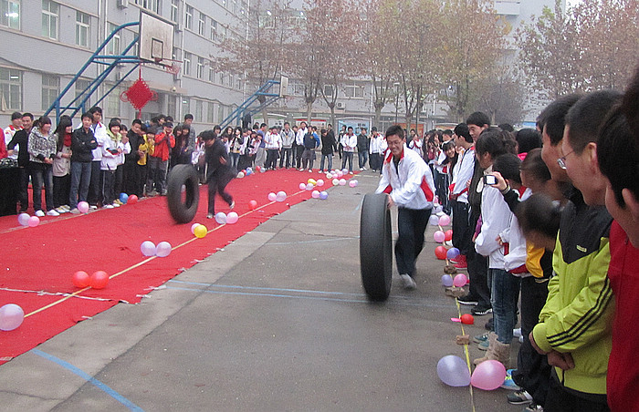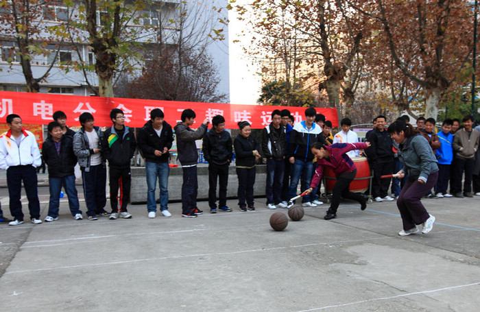 11月28日下午,管理工程分会在小操场举办教职工冬季趣味性运动比赛,共设趣味性比赛项目两项:快速开锁和车轮滚滚。图为车轮滚滚项目比赛现场
