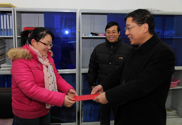 元月5日上午,院党委副书记、纪委书记兼工会主席杨云峰与教务分会主席一起到院图书馆,看望慰问生活困难的管理员孟庆兰,杨云峰亲手将困难教职工补助金交到孟庆兰手上。由此开始,院工会开展的以“扶贫济困解难事,温暖和谐进万家”为主题的送温暖活动正式启动。