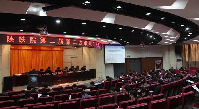 1月14日上午,陕铁院二届二次教职工代表大会在学术报告厅顺利举行。全院87名教职工代表参加了大会,院党委全体成员出席了会议。