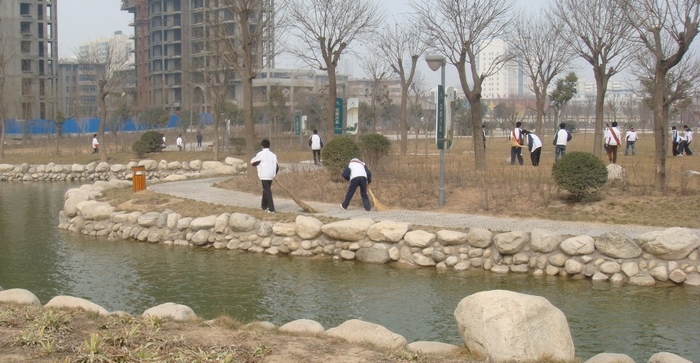 在公园捡拾垃圾,打扫卫生