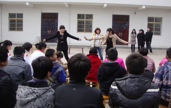 为聋哑学校的孩子们表演节目