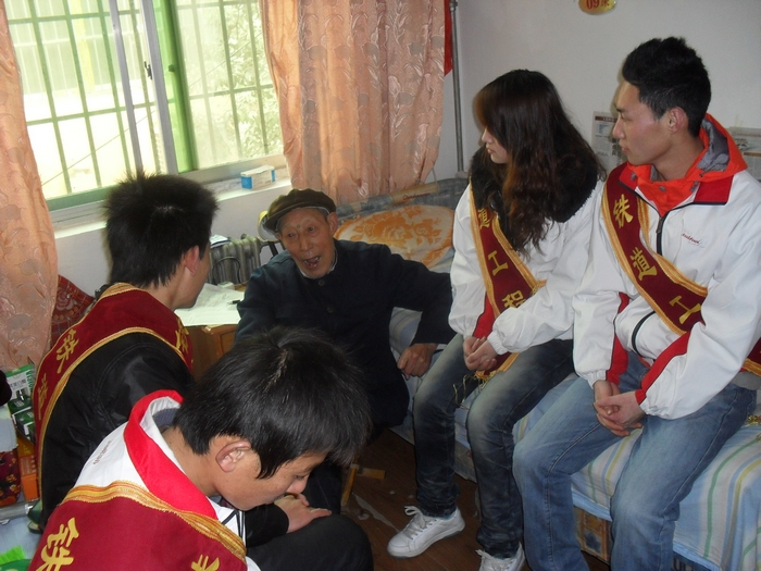 学生们的到来受到了敬老院全体员工的热烈欢迎。在简单的安排之后,有的学生拿起卫生工具对院落内的各个角落进行清扫,有的学生与老人拉家常,帮他们梳头剪指甲,有的学生搀扶行动不便的老人散步,还有的同学陪老人下棋娱乐。同学们天真活泼的性格,嘘寒问暖的行动,使孤寡老人感受到了浓浓的真情。(王盼)