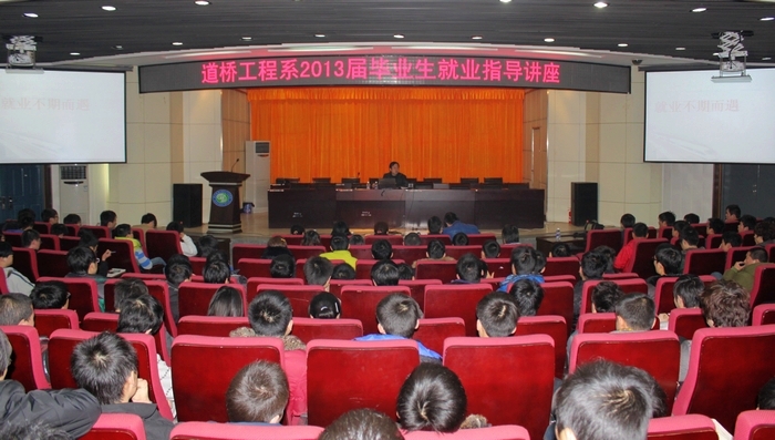 ◆道桥工程系举办2013届毕业生就业指导讲座。3月1日,道桥工程系党总支书记郗春荣在学术报告厅作了就业专题指导讲座。道桥系全体辅导员和部分2013届毕业生到场聆听了讲座。
