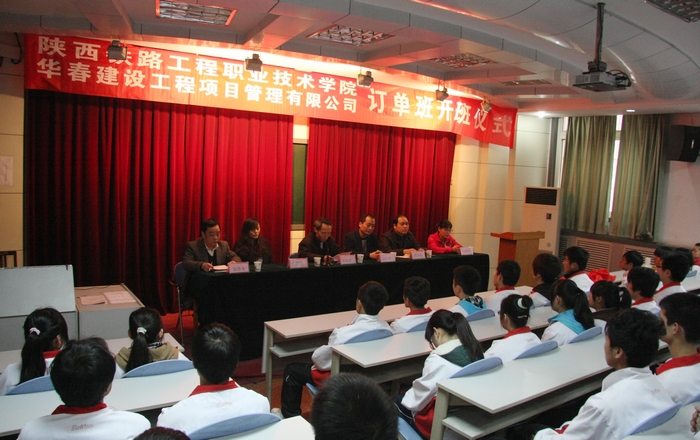 3月15日下午,由学院和华春建设工程项目管理有限责任公司联合举办的订单班开班仪式在学院B100举行。学院党委副书记车绪武,华春建设工程项目管理有限责任公司总经理刘开阳,人事部部长和学院教务处、校企合作处、建筑工程系负责人出席开班仪式。订单班53名同学参加了开班仪式。