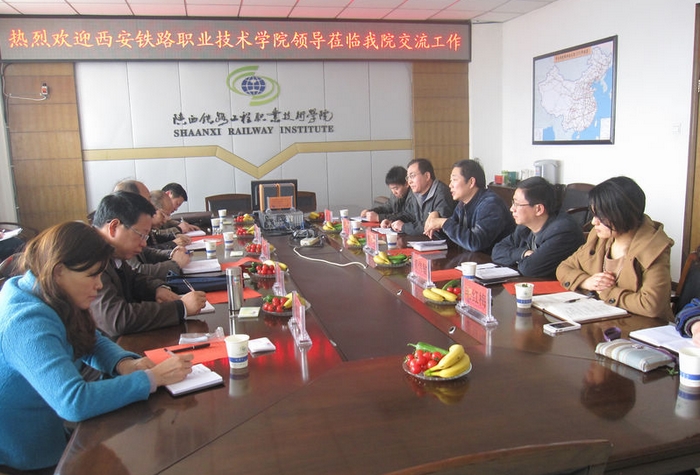 会上,焦胜军对西安铁路职业技术学院的来访表示热烈欢迎,并介绍了学院国家骨干高职院校建设的基本情况。随后,双方就示范院校建设组织管理、激励机制、企业调研等问题交换了看法,并就人才培养模式改革、专业与课程建设、专业群建设等内容进行了深入交流。