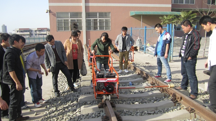 学生现场操作液压起拨道器