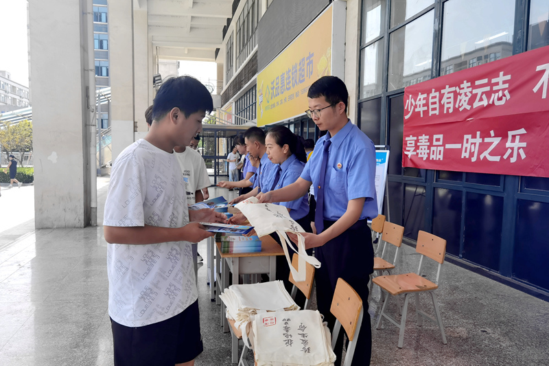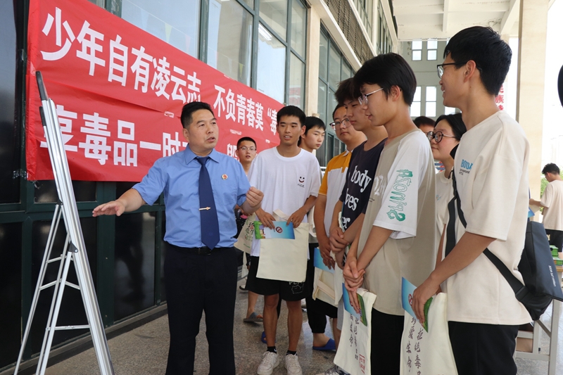 活动以“远离毒品伤害,守护多彩青春”为主题。活动现场,检察干警通过悬挂禁毒宣传横幅、发放禁毒宣传折页、摆放禁毒宣传展板、答疑解惑、“以案说法”等形式向学生讲解毒品的性质、特征、种类、危害以及涉毒品犯罪应当承担的法律责任,引导学生增强法律意识和自我保护能力,主动参与人民禁毒斗争,积极传播禁毒知识,做知法守法禁毒卫士。