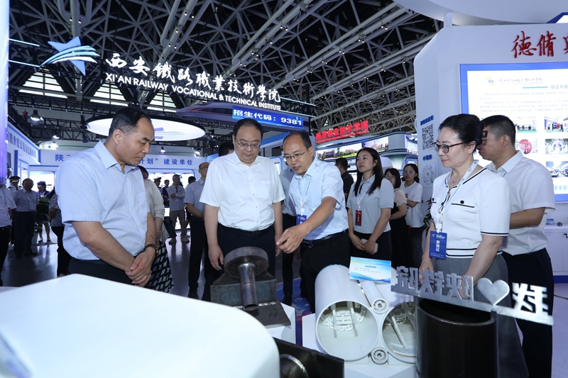 省教育工委副书记、省教育厅厅长王树声来到学校展位巡视布展工作,他观看了学校盾构机模型、感恩、我爱陕铁院、蒸汽火车模型等实物展品,对学校技术技能人才的培养,办学取得的成就等给予了高度评价,他希望学校在高素质技术技能人才培养的道路上,继续努力,发扬特色,在我省职业教育大发展的道路上,谱写更加辉煌灿烂的篇章。
