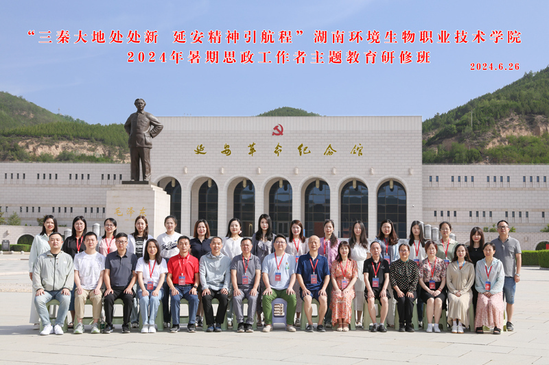 为响应党中央号召,用好用活中国化时代化的马克思主义,不断推进高校思想政治工作创新取得实效,建好“大思政课”,学校依托陕西红色文化教育资源,以中国共产党人的精神谱系之延安精神、南泥湾精神、张思德精神、照金精神等为主线,立足三秦大地新时代新变化,举办“三秦大地处处新 延安精神引航程”2024年高校思政工作者主题教育研修班。本次研修班是学校为湖南环境生物职业技术学院思政工作者量身打造,于6月24日—6月30日在延安开展了为期七天的实践研修活动。