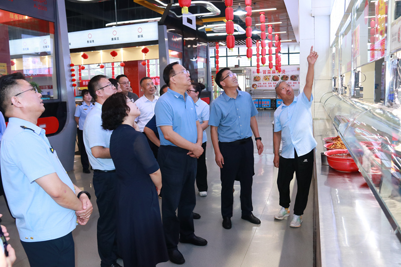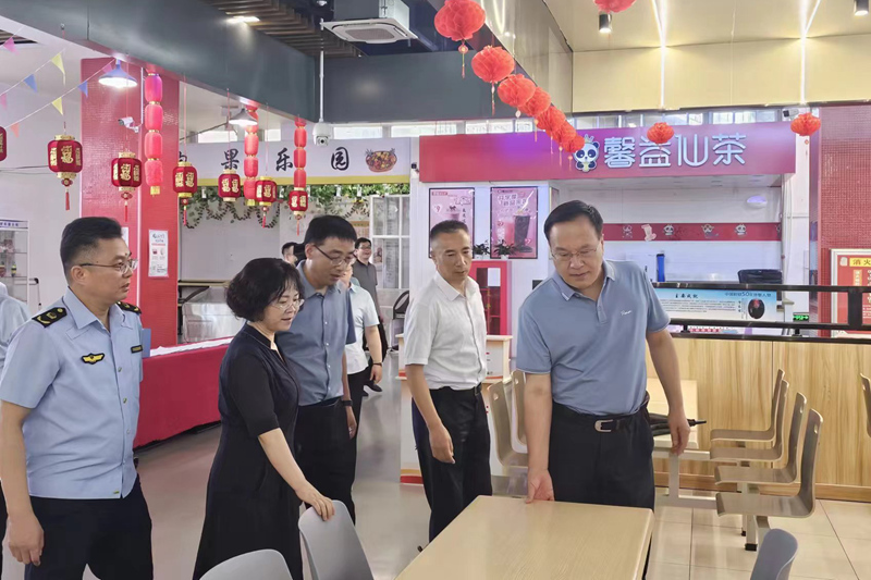 7月17日上午,由渭南市人大常委会党组书记、主任王琦、副市长张开、调研组成员、市民政局、市市场监管局、市体育局、市工商联等相关部门主要负责同志组成的渭南市人大常委会第一调研组,来校就食品安全包保机制和“两个责任”落实工作情况进行考察调研。学校校长韩小卫、餐饮中心及相关部门负责同志陪同调研。