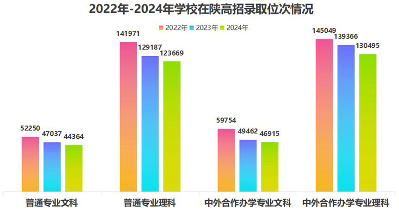 2024年,学校在陕高招计划900人,录取899人(含中外合作办学专业22人),录取考生分数全部超过二批本科线。