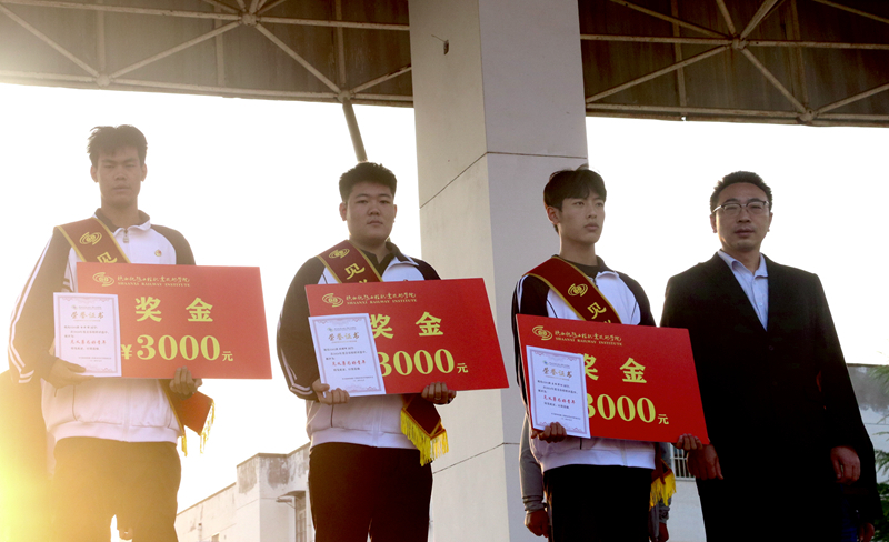 表彰大会上,学生处副处长赵增逊宣读了《关于对铁道装备制造学院刘璟辉、王柽泽阳、白云博3名同学见义勇为事迹进行表彰奖励的决定》,三位好青年身披“见义勇为好青年”绶带,祝和意为受到表彰的3名好青年颁发了青春榜样荣誉证书与奖金3000元。