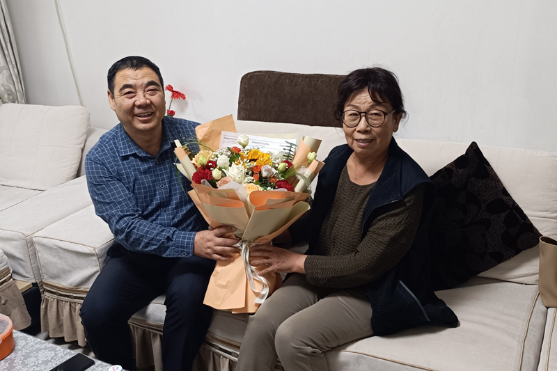 在退休职工的家中,校领导们为他们送上节日的慰问品并致以节日的祝福,并介绍了学校近年来的发展和取得的成绩。询问他们的身体状况、生活需求,以及存在的困难及诉求。同时对老教师们为学校发展做出的贡献表示衷心的感谢,也希望他们保重身体,发挥余热,一如既往地关心支持学校教育工作,为学校的发展献计献策。
