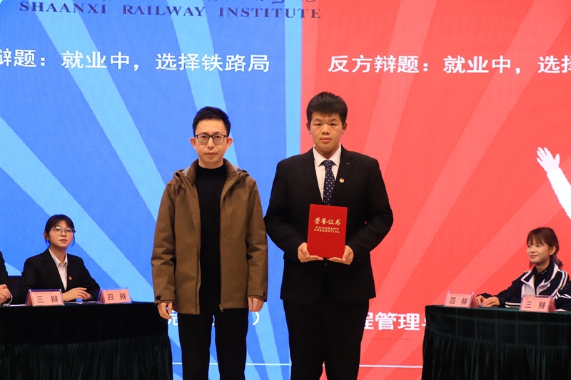 辩论赛中,正方观点认为铁路局国有企业背景,稳定性较高。国家重点发展领域,政策支持力度大。职业发展前景广阔,晋升空间大。享有国家铁路员工的各项优惠政策等。反方观点认为工程局项目类型多样,涵盖基础设施建设、房屋建筑、市政工程等多个领域。专业门类齐全,为毕业生提供广泛的就业选择。薪资待遇相对较高,福利保障完善。人才培养体系完善,有利于毕业生职业发展。经过激烈角逐,正方高铁工程学院代表队获得冠军,反方工程管理与物流学院代表队获得亚军,正方高铁工程学院吕秦瑞同学荣获最佳辩手。