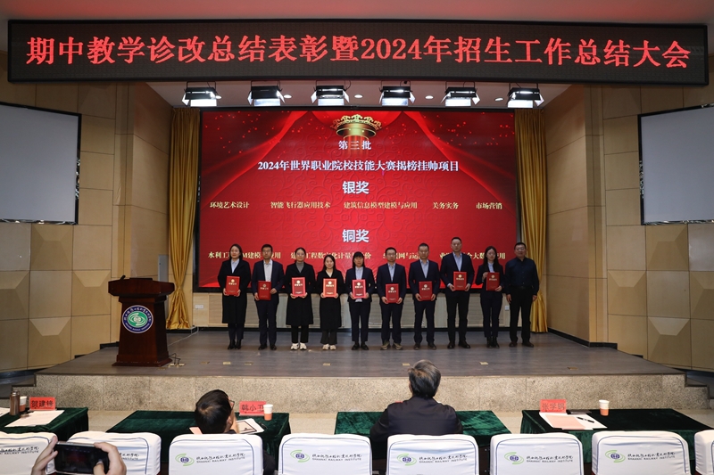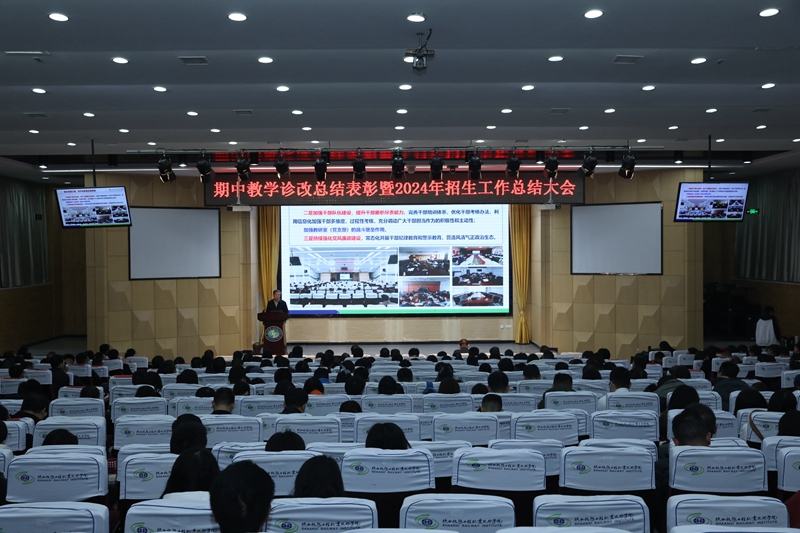 为全面推进教学工作诊断与改进,不断加强过程管理,持续提升教育教学质量。11月27日下午,学校在高新校区博爱厅召开2024-2025学年第一学期期中教学诊改总结表彰暨2024年招生工作总结大会,校领导、处科级干部、全体专兼职教师参会。会议由贺建锋副校长主持。