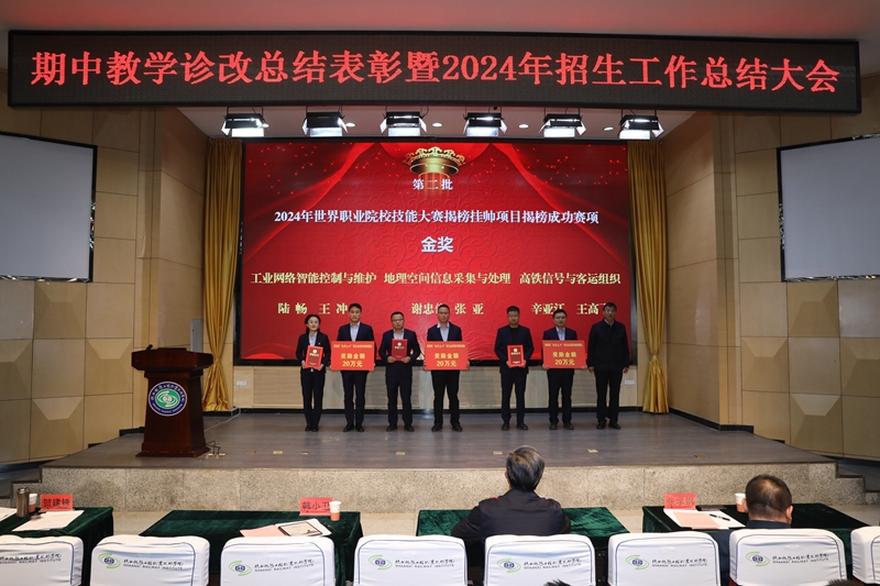 副校长刘明学宣读了《关于表彰2024 年世界职业院校技能大赛获奖团队的决定》《关于表彰 2024 年教师实践教学能力比赛获奖的决定》《关于表彰学校 2024-2025 学年第一学期期中教学诊改优秀项目的决定》3个表彰文件,希望受到表彰的团队和个人再接再厉,总结经验,不断探索创新,取得更大进步。全校广大教职工以获奖者为榜样,勤奋工作,爱岗敬业,牢固树立质量意识,为进一步提升教育教学质量贡献自己的力量。