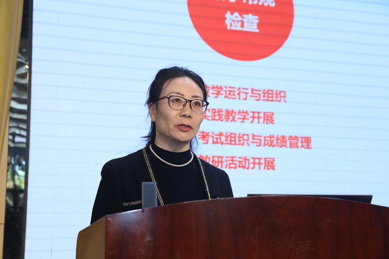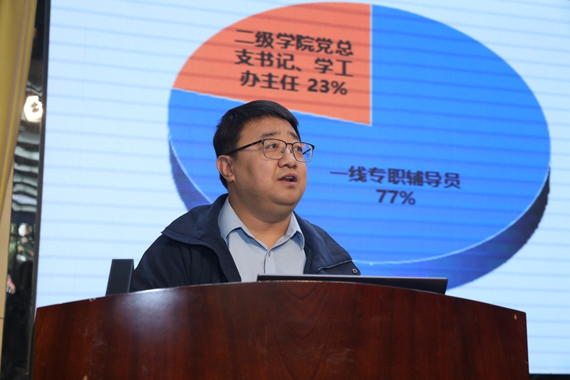 学生处处长陈明明对学生管理进行了总结,重点分析了学管工作、资助育人、心理健康教育等板块工作开展情况,统计数据反映学生管理工作落地、落细、落小,同时,针对诊断出的问题进行了深入思考。