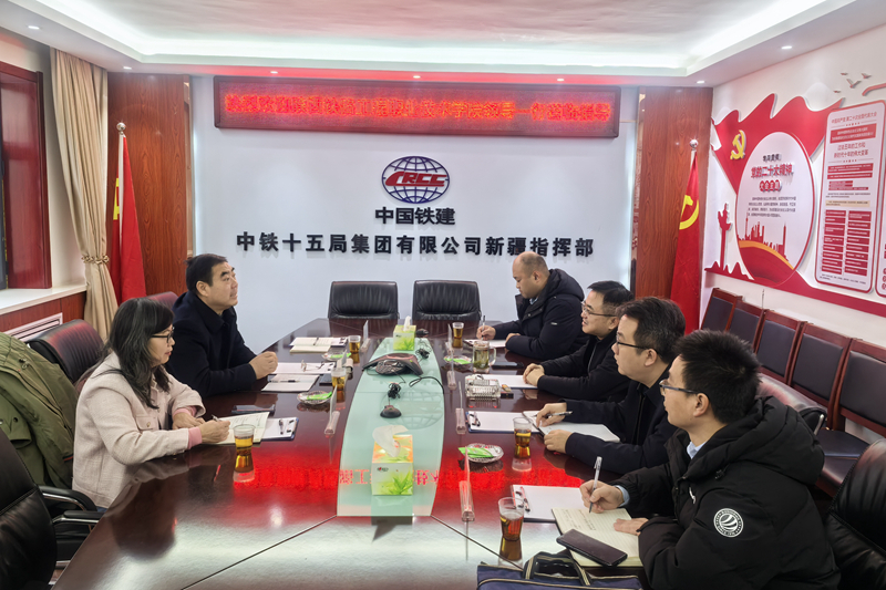 12月6日至7日,李林军一行先后调研了中铁十五局新疆分公司、中铁北京工程局新疆指挥部,与中铁十五局新疆分公司总经理王波、中铁北京工程局西北指挥部刘伟、中铁北京工程局一公司副总经理和伟深入交流,李林军向企业介绍了学校在双高建设、校企合作、产教融合、人才培养等方面取得的成绩,校企双方在职工培养、育训并举、科技创新等方面进行了深入交流,充分了解新疆区域铁路行业新质生产力发展趋势,为学院新双高建设、职教本科创建和学生就业拓展更广阔发展空间。