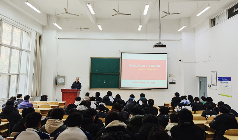 为深入学习宣传贯彻党的二十届三中全会精神,推进全会精神进课堂、进头脑,2024年12月17日上午,贺建锋副校长在高新校区GB106教室为测绘与检测学院测量3238班、测量5211班100余名学生讲授了题为《紧扣中国式现代化主题,进一步全面深化改革——党的二十届三中全会精神解读》的专题思政课。