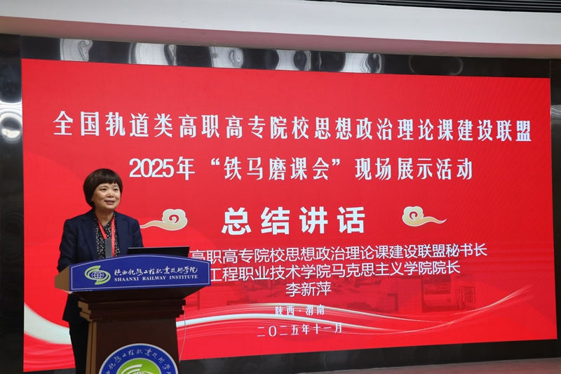 开幕式上,全国轨道类高职高专院校思想政治理论课建设联盟会长、学校党委书记焦胜军致辞,介绍了学校“铁色铸魂”思政工作体系及育人成果。陕西师范大学阎树群教授作专题讲座,深入阐释习近平新时代中国特色社会主义思想。教学展示环节分骨干教师组和青年教师组,20名选手融入轨道交通行业案例,以板书展示、沉浸式课件教学等形式展现教学风采,专家评委针对性提出优化建议。