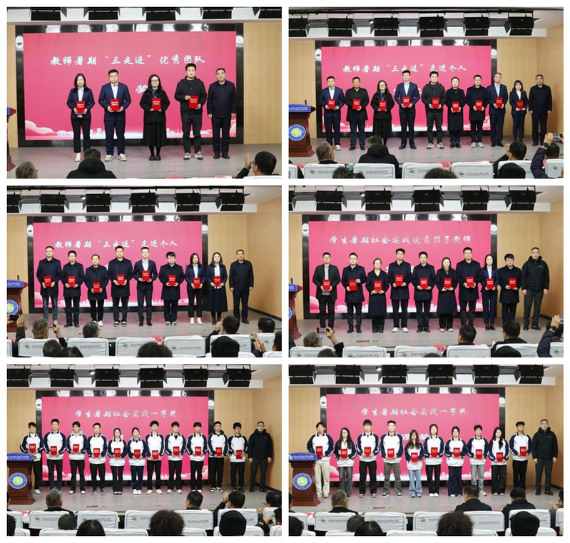 大会分别对4支教师暑期“三走进”优秀团队、17位教师暑期“三走进”先进个人、9位学生暑期社会实践优秀指导教师和21名获得暑期社会实践活动优秀成果一等奖的学生进行了表彰。