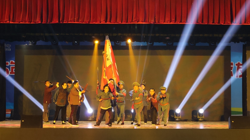 此外,两校区结合自身特色打造专属精彩,尽显差异化亮点。临渭校区小品《当考试还剩十五分钟》贴近校园生活,以诙谐幽默的演绎、鲜活生动的情节,再现青春校园里的趣味瞬间,引发全场师生强烈共鸣,台下欢笑不断、掌声连连;高新校区特邀华州区剧团带来红色情景剧《一张“全家福”》,以渭华起义红色故事为蓝本,通过时空交错的艺术手法,再现革命先辈的热血担当与家国情怀,让师生在沉浸式体验中感悟红色初心,赓续红色血脉,为现场师生上了一堂生动的红色思政课。整台晚会涵盖舞蹈、合唱、老腔、武术、小品、情景剧、歌舞联唱等多元形式,内容丰富、格调高雅,台上演员倾情演绎,台下观众热情高涨,掌声、欢呼声此起彼伏,充分展现了陕铁院校园文化的独特魅力。