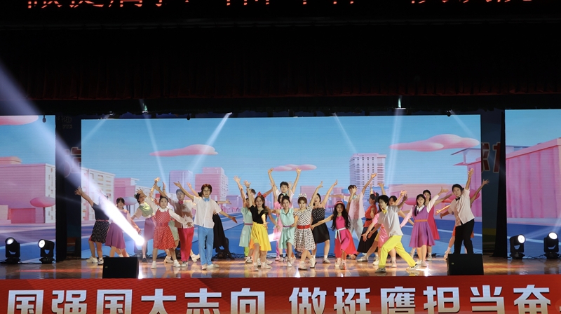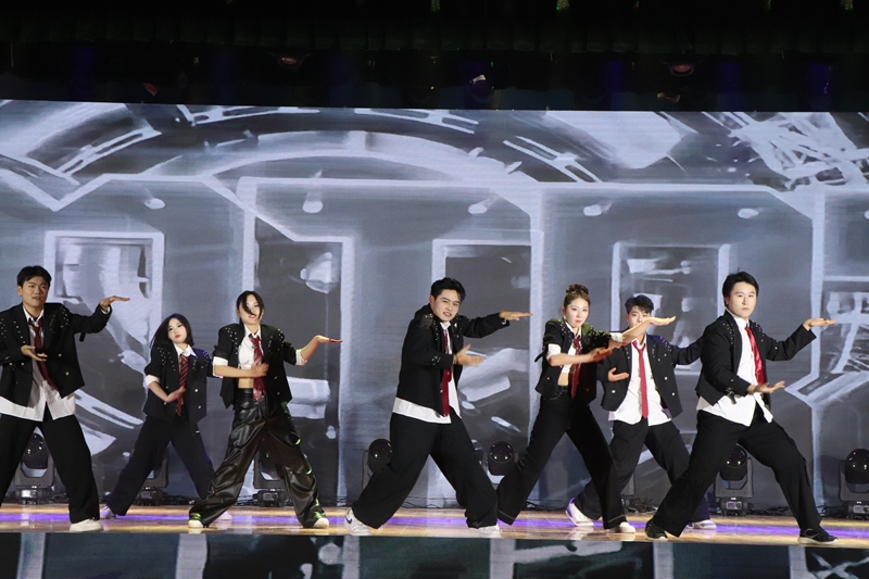 两校区晚会节目精彩纷呈,既有同源精品节目展现铁院学子同心同向的精神风貌,又有专属特色节目彰显校区独特魅力。开场舞《爱乐之城》拉开晚会帷幕,大学生艺术团舞蹈队以灵动舞步、飒爽身姿,展现铁院青年朝气蓬勃、向阳生长的青春活力,瞬间点燃全场氛围;歌伴舞《奔跑的青春》由舞蹈队与风铃合唱团联袂演绎,歌声激昂、舞姿矫健,生动诠释了铁院学子从技能实训赛场到全国竞赛舞台,从基建一线到海外实训阵地,始终以奋进之姿追逐梦想、挺膺担当的青春追求。国家级非物质文化遗产华阴老腔惊艳亮相两校区舞台,华阴市香玲老腔皮影艺术团带来《关中古歌》《将令一声震山川》,豪迈苍劲的唱腔、独具韵味的演绎,让师生近距离感受非遗文化的厚重底蕴与独特魅力,实现传统文化与青春校园的深度交融;街舞《夜芒》酷炫动感,尽显铁院学子多才多艺、敢闯敢拼的青春风采;合唱《山丹丹开花红艳艳》以深情歌声传递对党和祖国的无限热爱,彰显学校党建引领育人成效,让红色基因融入学子血脉。体育教学部武术队带来的《武魂震岳庆新程》震撼全场,队员们以刚劲招式、精湛技艺,展现中华武魂的磅礴气势,其斩获的多项全国、省级武术赛事佳绩,更是学校坚持五育并举、注重学生全面发展的生动缩影;民族歌舞联唱《爱我中华》旋律激昂、舞姿优美,师生同台演绎,抒发五十六个民族同心筑梦的家国情怀,彰显陕铁院学子扎根祖国大地、助力铁路建设的使命担当。