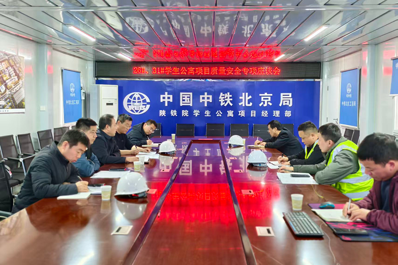 现场检查结束后,双方在项目部会议室召开学生公寓项目质量安全工作专题座谈会。会上,施工单位、监理单位及学校三方相关负责人分别汇报了项目施工安全、工程质量、进度推进情况及下一步工作计划。李晓飞对做好施工现场安全管理,维护校园安全稳定给予了指导意见及建议。
