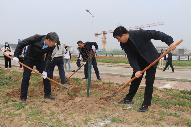 春风送暖,绿意萌动。在第48个植树节到来之际,为深入贯彻习近平生态文明思想,践行“绿水青山就是金山银山”的发展理念,以优美的生态校园环境迎接陕西省第十八届运动会部分赛项在我校举办,3月12日下午,学校在高新校区西区西南角开展“植绿护绿迎省运,美丽校园向未来”植树节主题活动。校党委书记焦胜军、校长韩小卫、副校长贺建锋、祝和意、刘明学等校领导与各二级学院四百余名师生代表共同参与,用实际行动为校园添绿,为省运助力。