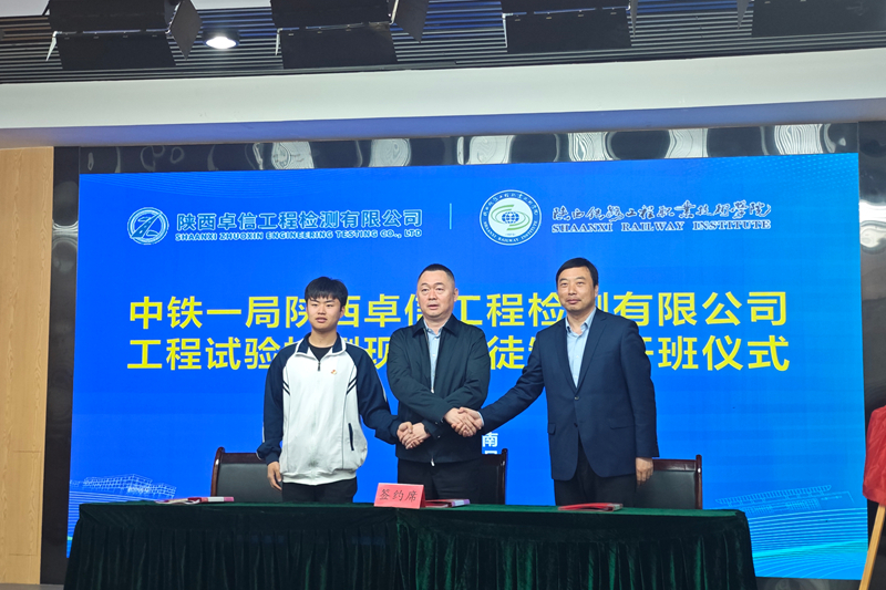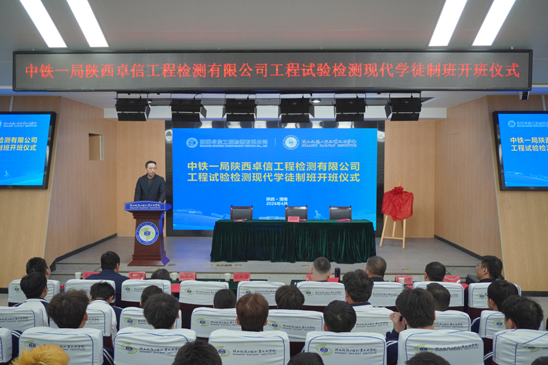 4月2日上午,全国工程智慧检测行业产教融合共同体副理事长单位中铁一局集团陕西卓信工程检测有限公司与学校联合举办的工程试验检测现代学徒制班开班仪式在学校高新校区诚信厅隆重举行。校企双方领导、教师代表及30名定制班学生共同见证这一重要时刻。会前,全体与会人员在星光广场合影留念,定格土木工程检测技术校企协同育人的又一崭新成果。