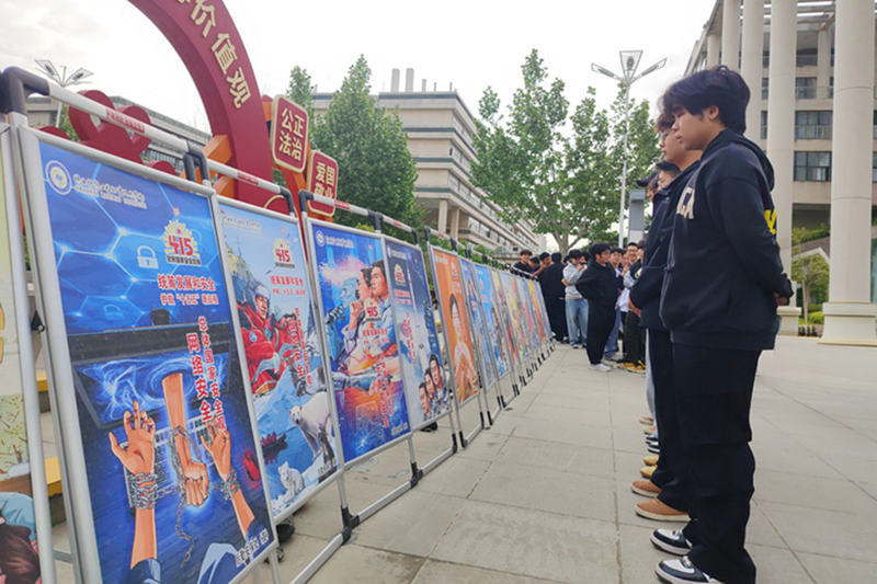 ——主题展板直观宣教,知识触手可及。在高新校区星光广场,20块国家安全主题展板整齐陈列,涵盖政治、军事、经济、网络、生物、人工智能、数据等全领域。图文并茂、通俗易懂,将抽象概念转化为身边常识,过往师生纷纷驻足观看,在潜移默化中提升防范能力。